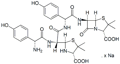 | Amoxicillin USP RC M AMX33N-100 N-(Penicillan-6-yl) Open Ring Amoxicillinamide Disodium Salt ; (2S,5R,6R)-6-((2R)-2-(2-Amino-2-(4-hydroxyphenyl)acetamido)-2-((2R,4S)-4-carboxy-5,5-dimethylthiazolidin-2-yl)acetamido)-3,3-dimethyl-7-oxo-4-thia-1-azabicyclo[3.2.0]heptane-2-carboxylic Acid MORE INFO >> |
