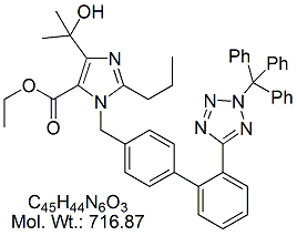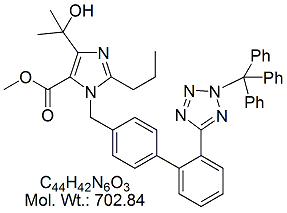 | Olmesartan Methyl Ester N2-Trityl Impurity OLM37-100 N2-Trityl Olmesartan Methyl Ester ; MORE INFO >> |