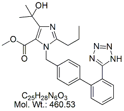 | Olmesartan Imidazole Ethyl Ester Impurity OLM56-100 Ethyl 4-(1-hydroxy-1-methylethyl)-2-propyl-imidazole-5-carboxylate ; CAS # 144689-93-0 ; MORE INFO >> |
