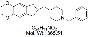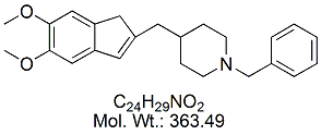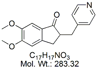 | Donepezil Hydrochloride DNP00H-100 (+/-)-2-[(1-Benzyl-4-piperidyl)methyl]-5,6-dimethoxy-1-indanone hydrochloride ; CAS # 120011-70-3 ; MORE INFO >> |