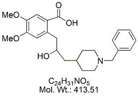 | Donepezil Open-Ring Hydroxy Acid DNP39-100 Donepezil Hydroxy Acid Impurity ; 2-[3-(1-Benzylpiperidin-4-yl)-2-hydroxypropyl)-4,5-dimethoxybenzoic acid ; MORE INFO >> |