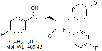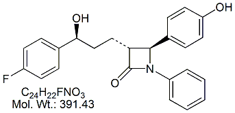 | Ezetimibe EZT00-100 (3\'S, 3R, 4S)-Ezetimibe ; (SRS)-Ezetimibe ; (3R,4S)-1-(4-Fluorophenyl)-3-[(3S)-3-(4-fluorophenyl)-3-hydroxypropyl]-4-(4-hydroxyphenyl)azetidin-2-one ; CAS # 163222-33-1 ; MORE INFO >> |