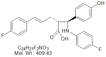 | Ezetimibe meta-Fluorobenzene Isomer ;	 100 MG EZT68-100 (3R,4S)-1-(4-Fluorophenyl)-3-[(3S)-3-(3-fluorophenyl)-3-hydroxypropyl]-4-(4-hydroxyphenyl)azetidin-2-one ; MORE INFO >> |