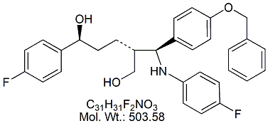 | Ezetimibe Benzyl Diol Impurity EZT53-100 (1S,4R)-4-((S)-(4-(Benzyloxy)phenyl)(4-fluorophenylamino)methyl)-1-(4-fluorophenyl)pentane-1,5-diol ; CAS # 1374250-06-2 ; MORE INFO >> |