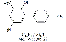 | Mesalazine EP Impurity P MSL16-100 3-(4-Sulfophenyl)-5-Aminosalicylic Acid ; 5-Amino-2-hydroxy-3-(4-sulfophenyl)benzoic acid ; 5-Amino-2-hydroxy-4�-sulfo-[1,1�-Biphenyl]-3-carboxylic Acid ; CAS # 887256-40-8 ; MORE INFO >> |