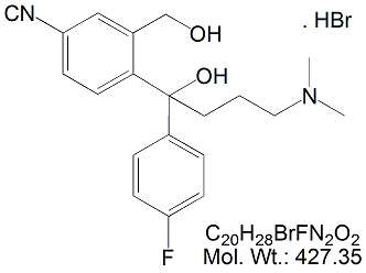 | Escitalopram EP Impurity E ECT05H-100 Escitalopram USP RC A (HBr Salt) ; Citadiol HBr ; Citalopram Dihydroxy Impurity ; CAS # 103146-26-5 (HBr salt) ; 103146-25-4 (base) ; MORE INFO >> |