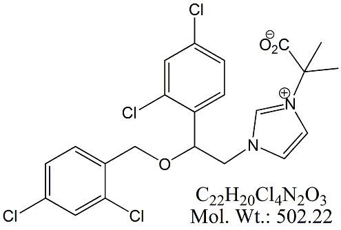 | Miconazole EP Impurity E MCN05-100 Miconazole BP Impurity E ; Miconazole N-(2-Methyl)propanoate ; 2-[1-[(2RS)-2-[(2,4-Dichlorobenzyl)oxy]-2-(2,4-dichlorophenyl)ethyl]-1H-imidazol-3-io]-2-methylpropanoate ; MORE INFO >> |
