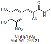 | Entacapone ETC00-100 (2E)-2-Cyano-3-(3,4-dihydroxy-5-nitrophenyl)-N,N-diethyl-2-propenamide ; CAS # 130929-57-6 ; MORE INFO >> |