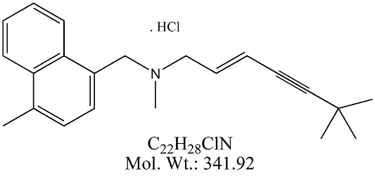 | Terbinafine HCl TBN00H-100 (2E)-N,6,6-Trimethyl-N-(naphthalen-1-ylmethyl)hept-2-en-4-yn-1-amine hydrochloride ; CAS # 78628-80-5 ; MORE INFO >> |