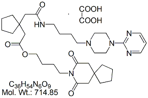 | Buspirone EP Impurity F ;	100 MG BPR06X-100 Buspirone Open-Ring Dimer Impurity (USP) ; 4-(4-(Pyrimidin-2-yl)piperazin-1-yl)butyl 2-(1-(2-Oxo-2-((4-(4-(pyrimidin-2-yl)piperazin-1-yl)butyl)amino)ethyl)cyclopentyl)acetate oxalate ; MORE INFO >> |
