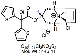 | Tiotropium Bromide Monohydrate ;	100 MG TTP00-100 (1R,2R,4S,5S,7s)-7-[(2-Hydroxy-2,2-dithiophen-2-ylacetyl)oxy]-9,9-dimethyl-3-oxa-9-azoniatricyclo[3.3.1.02,4]nonane bromide monohydrate ; CAS # 136310-93-5 ; MORE INFO >> |
