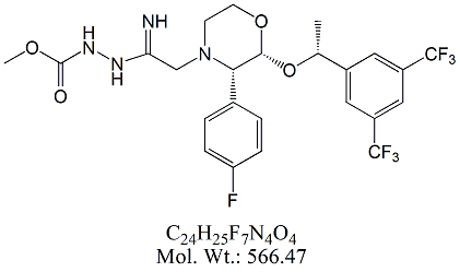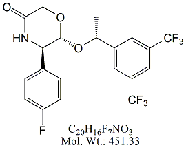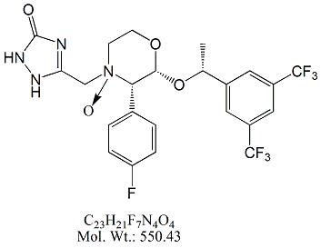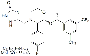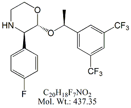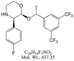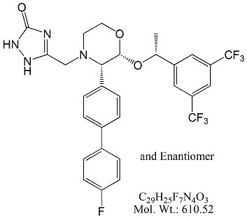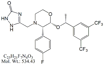 | Aprepitant (S,R,S)-Isomer APP76-100 5-([(2R,3S)-2-((S)-1-[3,5-bis(trifluoromethyl)phenyl]ethoxy)-3-(4-fluoro phenyl)morpholino]methyl)-1H-1,2,4-triazol-3(2H)-one ; MORE INFO >> |