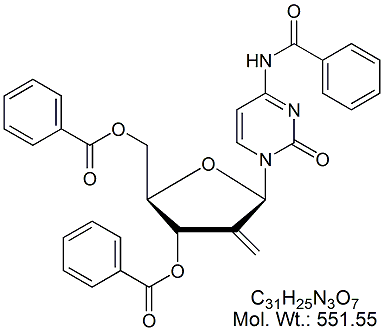 | Sofosbuvir Methylene Impurity SFS57-100 (2R,3S,5R)-5-(4-Benzamido-2-oxopyrimidin-1(2H)-yl)-2-((benzoyloxy)methyl)-4-methylenetetrahydrofuran-3-yl benzoate ; N-Benzoyl-2�-deoxy-2�-methylenecytidine 3�,5�-Dibenzoate ; CAS # 863329-63-9 ; MORE INFO >> |