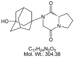 | Vildagliptin VDG00-100 (2S)-1-[2-[(3-Hydroxytricyclo[3.3.1.13,7]dec-1-yl)amino]acetyl]-2-pyrrolidinecarbonitrile ; CAS # 274901-16-5 ; MORE INFO >> |