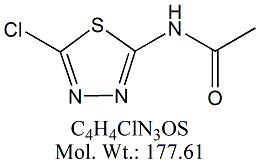 | Acetazolamide EP Impurity A AZA01-100 N-(5-Chloro-1,3,4-thiadiazol-2-yl)acetamide ; CAS # 60320-32-3 ; MORE INFO >> |