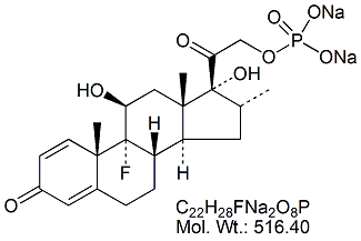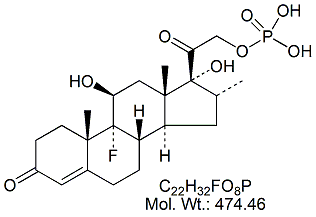 | Dexamethasone Sodium Phosphate DSP00-100 9-Fluoro-11β,17-dihydroxy-16α-methyl-3,20-dioxopregna-1,4-dien-21-yl disodium phosphate ; CAS # 2392-39-4 ; MORE INFO >> |