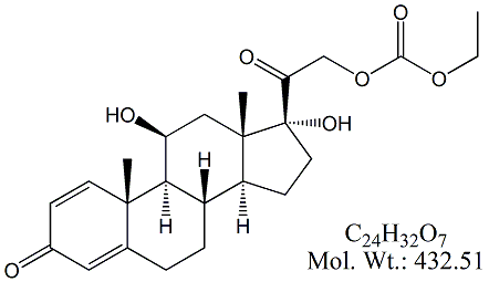 | Prednisolone 21-Ethoxycarbonyl Impurity PNS54-100 (11β)-21-[(Ethoxycarbonyl)oxy]-11,17-dihydroxy-Pregna-1,4-diene-3,20-dione ; CAS # 2205-88-1 ; MORE INFO >> |