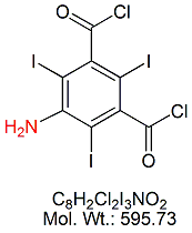 | Iohexol EP Impurity L IHX12-100MG Iohexol BP Impurity L ; 3,5-Bis(chlorocarbonyl)-2,4,6-triiodobenzenamine ; CAS # 37441-29-5 ; MORE INFO >> |
