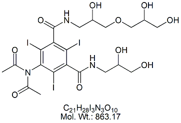 | Iohexol IHX00-100MG 5-[Acetyl(2,3-dihydroxypropyl)amino]-N,N′-bis(2,3-dihydroxypropyl)-2,4,6-triiodobenzene-1,3-dicarboxamide ; CAS # 66108-95-0 ; MORE INFO >> |