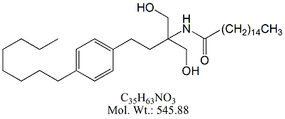 | Fingolimod Palmitate Amide FGL55-100 N-(1-Hydroxy-2-(hydroxymethyl)-4-(4-octylphenyl)butan-2-yl)palmitamide ; CAS # 1242271-26-6 ; MORE INFO >> |