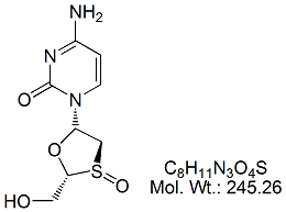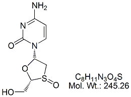 | Lamivudine LMV00-100 4-Amino-1-[(2R,5S)-2-(hydroxymethyl)-1,3-oxathiolan-5-yl] pyrimidin-2(1H)-one ; CAS # 134678-17-4 ; MORE INFO >> |