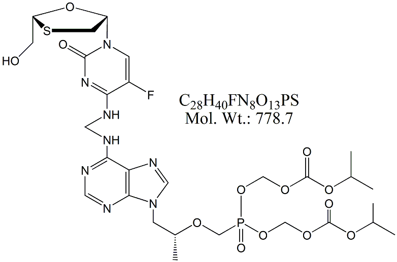 | Emtricitabine Tenofovir Monosoproxil Dimer EMT80-100 ((((((R)-1-(6-((((5-Fluoro-1-((2R,5S)-2-(hydroxymethyl)-1,3-oxathiolan-5-yl)-2-oxo-1,2-dihydropyrimidin-4-yl)amino)methyl)amino)-9H-purin-9-yl)propan-2-yl)oxy)methyl)(hydroxy)phosphoryl)oxy)methyl Isopropyl Carbonate ; MORE INFO >> |