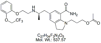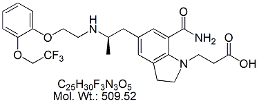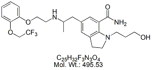 | Silodosin SLD00-100 1-(3-Hydroxypropyl)-5-[(2R)-({2-[2-[2-(2,2,2-trifluoroethoxy)phenoxy] ethyl} amino)propyl]indoline-7-carboxamide ; CAS # 160970-54-7 ; MORE INFO >> |