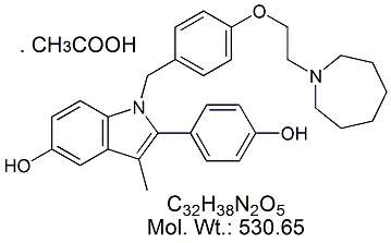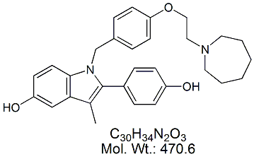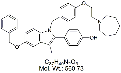 | Bazedoxifene BZD00B-100 1-[[4-[2-(Hexahydro-1H-azepin-1-yl)ethoxy]phenyl]methyl]-2-(4-hydroxyphenyl)-3-methyl-1H-indol-5-ol ; CAS # 198481-32-2 ; MORE INFO >> |