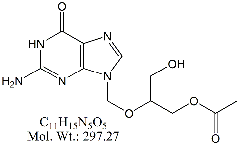 | Valganciclovir Hydrochloride VGC00H-100 L-Valine 2-[(2-amino-1,6-dihydro-6-oxo-9H-purin-9-yl)methoxy]-3-hydroxy propyl ester hydrochloride ; CAS # 175865-59-5 ; MORE INFO >> |