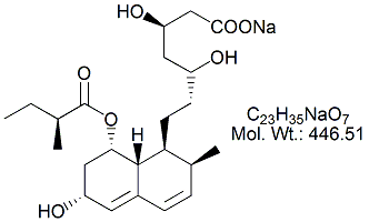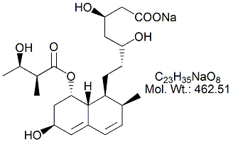 | Pravastatin EP Impurity E ; 10 MG PVS05N-10 beta-(S)-Hydroxy Sodium ; (3R,5R)-3,5-Dihydroxy-7-[(1S,2S,6S,8S,8aR)-6-hydroxy-8-[[(2S,3S)-3-hydroxy-2-methylbutanoyl]oxy]-2-methyl-1,2,6,7,8,8a-hexahydro naphthalen-1-yl] heptanoic acid sodium salt ; CAS # 722504-45-2 (Sodium Sal MORE INFO >> |