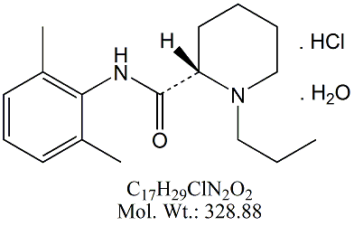 | Ropivacaine Hydrochloride Monohydrate RPV00H-100 (−)-(S)-N-(2,6-Dimethylphenyl)-1-propylpiperidine-2-carboxamide hydrochloride monohydrate ; CAS # 132112-35-7 ; MORE INFO >> |