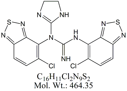 | Tizanidine EP Impurity F TZN06-100 1,3-Bis(5-chloro-2,1,3-benzothiadiazol-4-yl)-1-(4,5-dihydro-1H-imidazol-2-yl)guanidine ; MORE INFO >> |