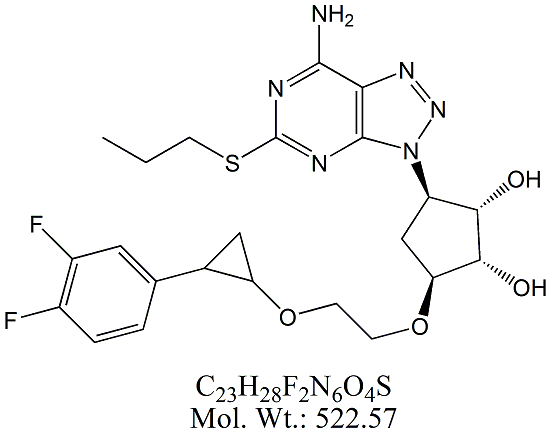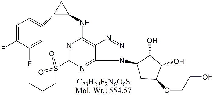 | Ticagrelor DP6 TCG66-100 (2S,3S)-2-(3,4-Difluorophenyl)-3-(3-((1S,2S,3S,4S)-2,3-dihydroxy-4-(2-hydroxyethoxy)cyclopentyl)-5-(propylthio)-3H-[1,2,3]triazolo[4,5-d]pyrimidin-7-ylamino)cyclopropanone ; MORE INFO >> |