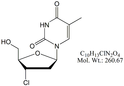 | Zidovudine EP Impurity B ZDV02-100 Zidovudine USP RC B ; 3′-Chloro-3′-deoxythymidine (USP) ; 1-(3-Chloro-2,3-dideoxy-β-D-erythro-pentofuranosyl)-5-methylpyrimidine-2,4(1H,3H)-dione ; CAS # 25526-94-7 ; MORE INFO >> |