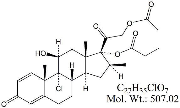 | Beclometasone Dipropionate EP Impurity B BCD02-100 Beclometasone 21-Acetate 17-Propionate ; 21-(Acetyloxy)-9-chloro-11β-hydroxy-16β-methyl-3,20-dioxopregna-1,4-dien-17-yl propanoate ; CAS # 5534-08-7 ; MORE INFO >> |