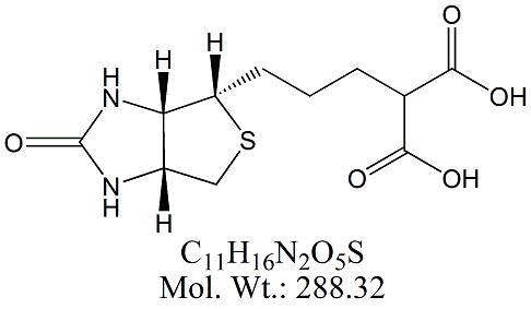 | Biotin EP Impurity B BTN02-100 Biotin Diacid ; 4-[(3aS,4S,6aR)-2-Oxohexahydrothieno[3,4-d]imidazol-4-yl]butane-1,1-dicarboxylic acid ; CAS # 57671-79-1 ; MORE INFO >> |