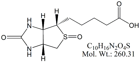 | Biotin Sulfoxide BTN09-100 (3aS,4S,5RS,6aR)-Hexahydro-2-oxo-1H-thieno[3,4-d]imidazole-4-pentanoic acid 5-oxide ; CAS # 23015-53-4 ; MORE INFO >> |
