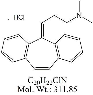 | Amitriptyline Hydrochloride ATL00H-100 3-(10,11-Dihydro-5H-dibenzo[a,d][7]annulen-5-ylidene)-N,N-dimethylpropan-1-amine hydrochloride ; CAS # 549-18-8 ; MORE INFO >> |