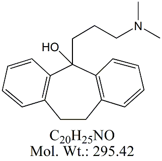 | Amitriptyline EP Impurity D ATL04-100 Amitriptyline USP RC B ; Amitriptynol (USP) ; 5-[3-(Dimethylamino)propyl]-10,11-dihydro-5H-dibenzo[a,d][7]annulen-5-ol ; CAS # 1159-03-1 ; MORE INFO >> |