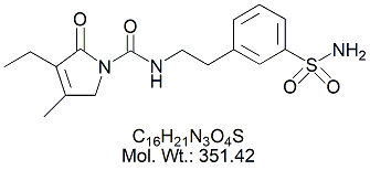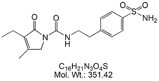 | Glimepiride Sulfonamide ortho-Isomer GLM42-100 [2-[2-(3-Ethyl-4-methyl-2-oxo-3-pyrroline-1-carboxamido) ethyl] phenyl] sulfonamide ; MORE INFO >> |