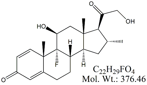 | Desoximetasone DMT00-100 (11β,16α)-9-Fluoro-11,21-dihydroxy-16-methyl-pregna-1,4-diene-3,20-dione ; 17-Deoxydexamethasone ; CAS # 382-67-2 ; MORE INFO >> |