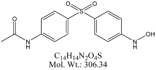 | Dapsone N-Acetyl N-Hydroxy Impurity DPS58-100 N-[4-[(4-Hydroxylaminophenyl)sulfonyl]phenyl]-acetamide ; CAS # 32604-86-7 ; MORE INFO >> |