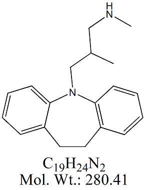 | Trimipramine EP Impurity B TMP02-100 Trimipramine BP Impurity B ; N-Demethyl Trimipramine ; (2RS)-3-(10,11-Dihydro-5H-dibenzo[b,f]azepin-5-yl)-N,2-dimethylpropan-1-amine ; CAS # 2293-21-2 ; MORE INFO >> |