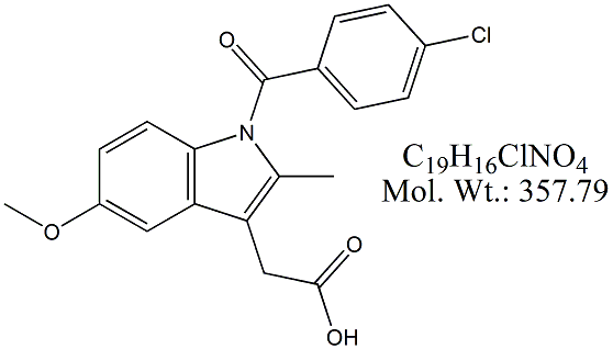 | Indomethacin IDM00-100 1-(4-Chlorobenzoyl)-5-methoxy-2-methyl-1H-indole-3-acetic Acid ; CAS # 53-86-1 ; MORE INFO >> |