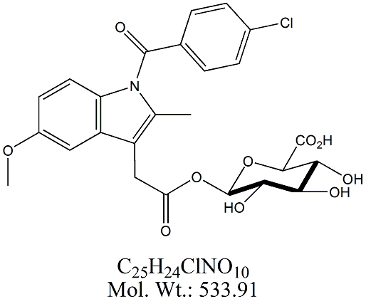 | Indomethacin Acyl-β-D-glucuronide IDM51-100 Indomethacin Glucuronide ; 1-[1-(4-Chlorobenzoyl)-5-methoxy-2-methyl-1H-indole-3-acetate] β-D-Glucopyranuronic Acid ; CAS # 75523-11-4 ; MORE INFO >> |