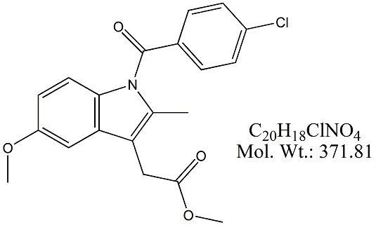 | Indomethacin Methyl Ester IDM55-100 1-(4-Chlorobenzoyl)-5-methoxy-2-methyl-1H-indole-3-acetic Acid Methyl Ester ; CAS # 1601-18-9 ; MORE INFO >> |