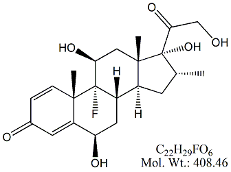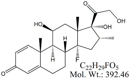 | Dexamethasone EP Impurity F DMS06-100 9-Fluoro-11β,21-dihydroxy-16α-methylpregna-1,4-diene-3,20-dione ; CAS # 382-67-2 ; MORE INFO >> |