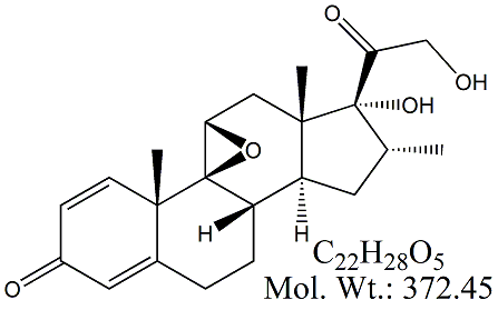 | Dexamethasone EP Impurity I DMS09-100 9α,11α-Epoxy-17,21-dihydroxy-16α-methylpregna-1,4-diene-3,20-dione ; CAS # 14622-47-0 ; MORE INFO >> |