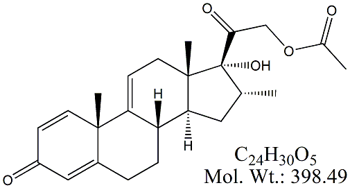 | Dexamethasone EP Impurity H DMS08-100 17-Hydroxy-16α-methyl-3,20-dioxopregna-1,4,9(11)-trien-21-yl acetate ; CAS # 10106-41-9 ; MORE INFO >> |
