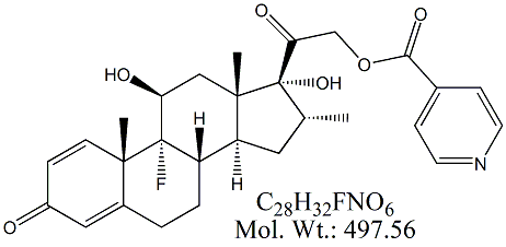 | Dexamethasone Isonicotinate DSI00-100 9-Fluoro-11β,17-dihydroxy-16α-methyl-3,20-dioxopregna-1,4-dien-21-yl pyridine-4-carboxylate ; CAS # 2265-64-7 ; MORE INFO >> |
